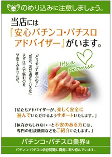 「安心パチンコ・パチスロアドバイザー」のポスターを掲示されているか?を確認させて頂きます。