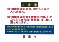 | (1)警察庁作成ポスター | (2)18歳未満入場禁止ポスター | (3)18歳未満遊技禁止シール |